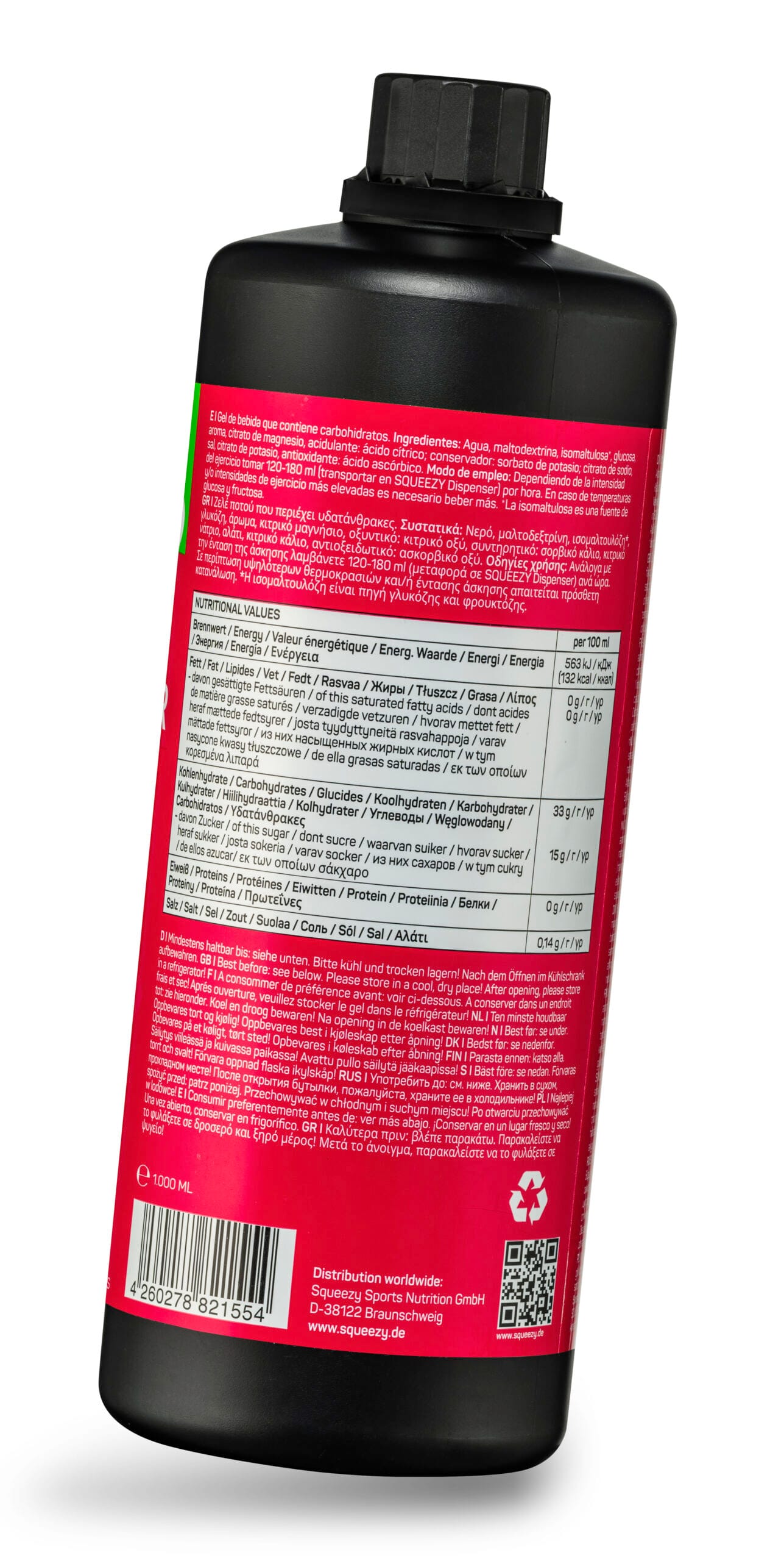 Le Gel Énergétique Liquide (Recharge) SQUEEZY est une solution durable et économique pour les sportifs exigeants. Composé d’une Recharge Énergétique Liquide 1000 ml et d’un Flacon Souple 150 ml (vendu séparément), ce système évite les déchets de sachets tout en offrant une énergie rapide et une hydratation optimale. Formulé avec un mélange de glucides complexes à libération progressive, des électrolytes (sodium/potassium) et sans additifs superflus, il convient aux efforts intenses et prolongés.