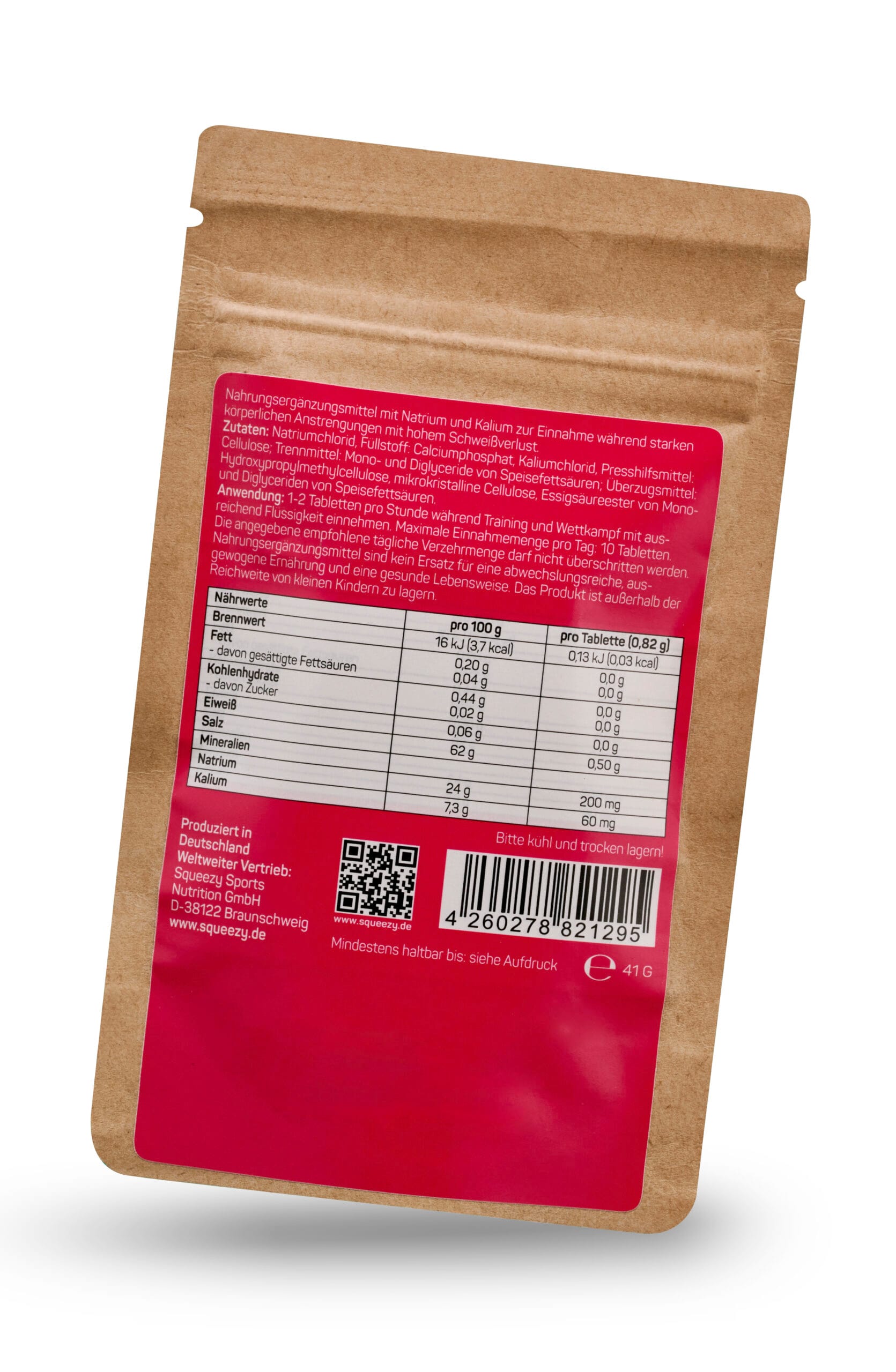 Les Comprimés de Sel Squeezy (50 comprimés = 41g) sont un complément idéal pour compenser les pertes en sodium et minéraux lors d’efforts physiques intenses accompagnés d’une transpiration abondante. Formulés avec du sel (chlorure de sodium) et du potassium, ces comprimés enrobés aident à prévenir les carences en électrolytes, essentielles au bon fonctionnement musculaire, à la transmission nerveuse et à l’équilibre hydrique.